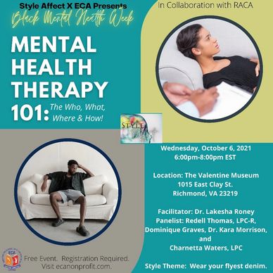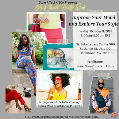 In collaboration with the artist and "fashionista," Mecca Williams, LPC, the Style Affect uses the art of personal style and fashion as a mechanism to educate African Americans in the Richmond community about mental health issues, symptoms, management skills and treatment resources .